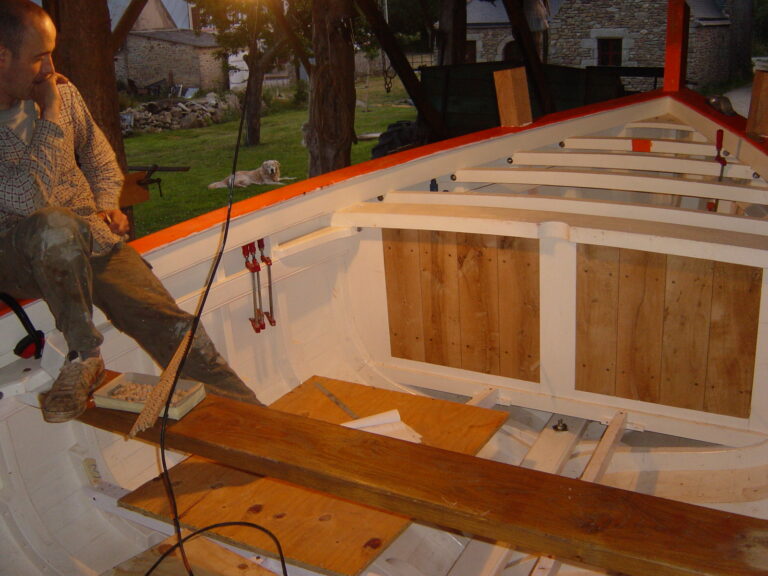 En 2004, un ami me signale une jolie coque de bateau abandonnée à l’Aber-Vrach…et me voilà parti, épaulé par 2 charpentiers de marine, pour la restauration de La Jeune Françoise, cotre de 1941.